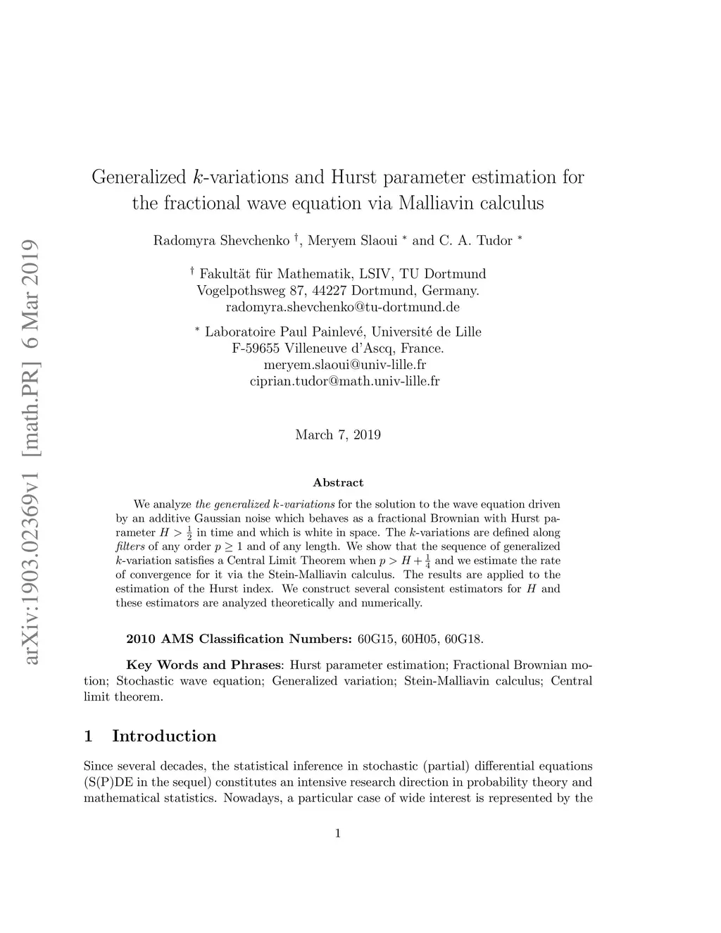 Journal of Statistical Planning and Inference (JSPI), 2019