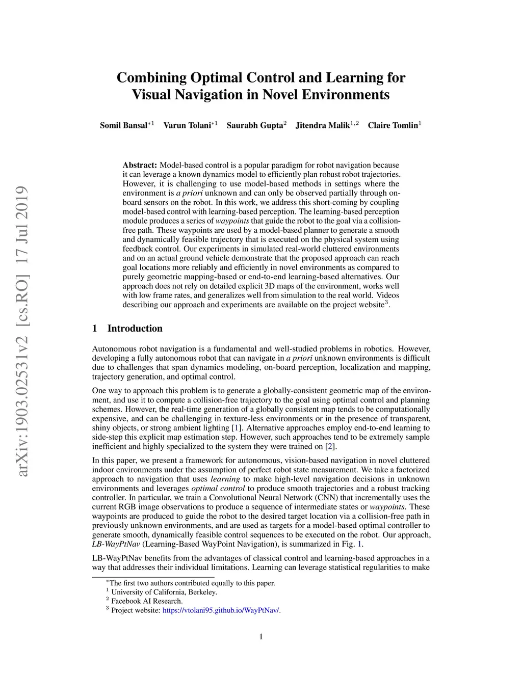 Combining Optimal Control and Learning for Visual Navigation in Novel