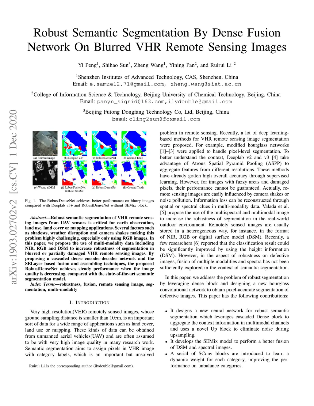 Robust Semantic Segmentation By Dense Fusion Network On Blurred VHR