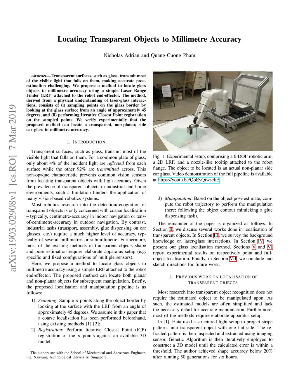 Locating Transparent Objects to Millimetre Accuracy