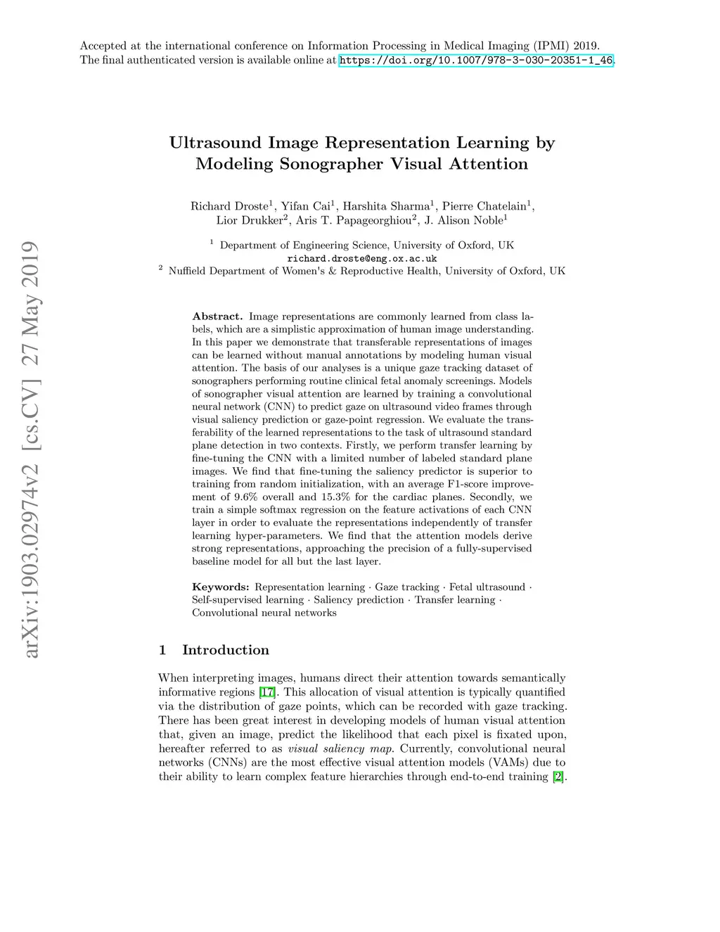 Ultrasound Image Representation Learning by Modeling Sonographer Visual