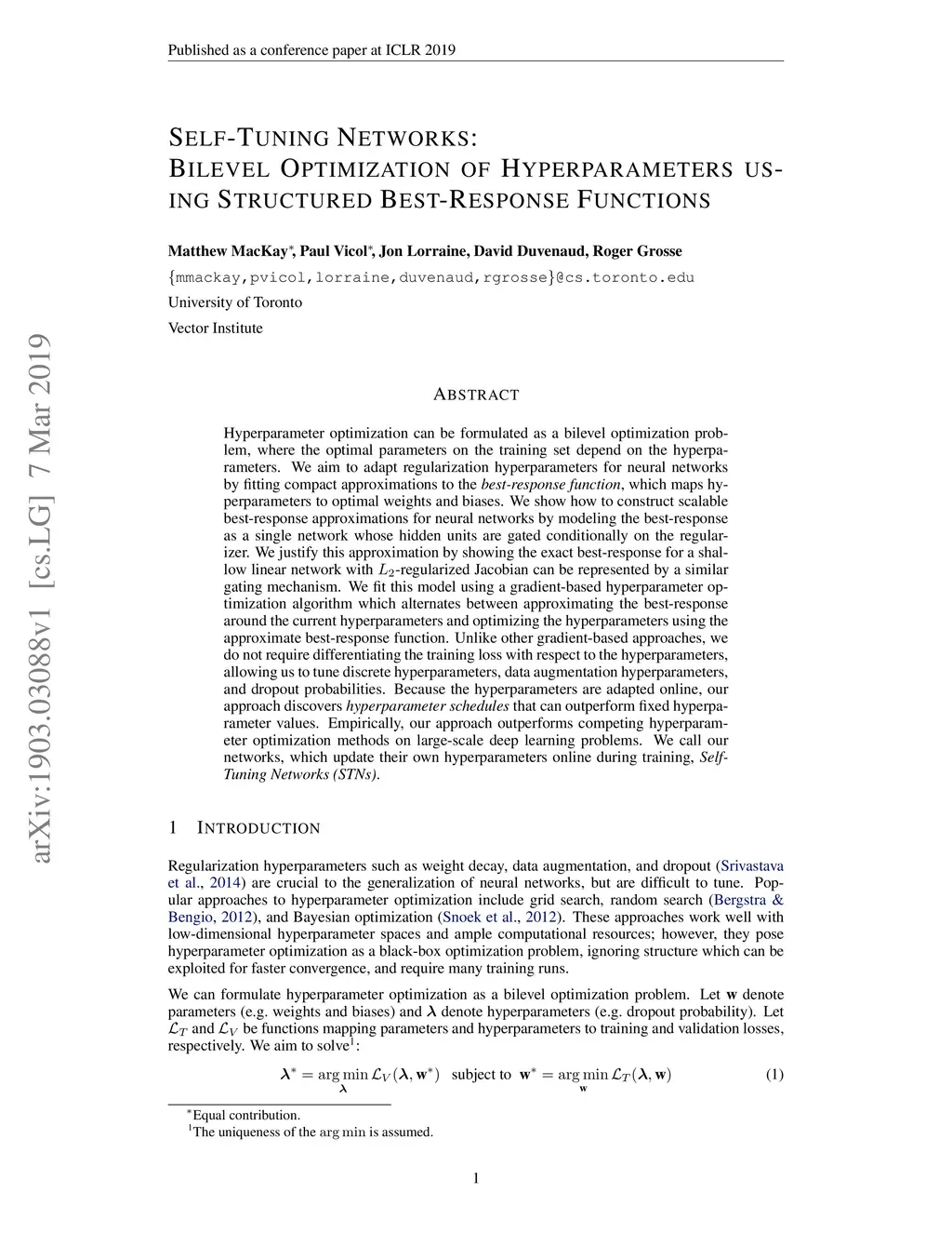 Self-Tuning Networks: Bilevel Optimization of Hyperparameters using