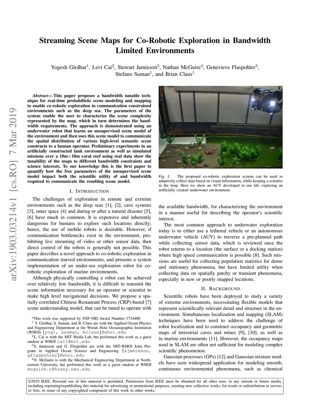 This paper proposes a bandwidth tunable technique for real-time probabilistic scene modeling and mapping to enable co-robotic exploration in communication constrained environments such as the deep sea. The parameters of the system enable the user to characterize the scene complexity represented by the map, which in turn determines the bandwidth requirements. The approach is demonstrated using an underwater robot that learns an unsupervised scene model of the environment and then uses this scene model to communicate the spatial distribution of various high-level semantic scene constructs to a human operator. Preliminary experiments in an artificially constructed tank environment as well as simulated missions over a 10m10m coral reef using real data show the tunability of the maps to different bandwidth constraints and science interests. To our knowledge this is the first paper to quantify how the free parameters of the unsupervised scene model impact both the scientific utility of and bandwidth required to communicate the resulting scene model.