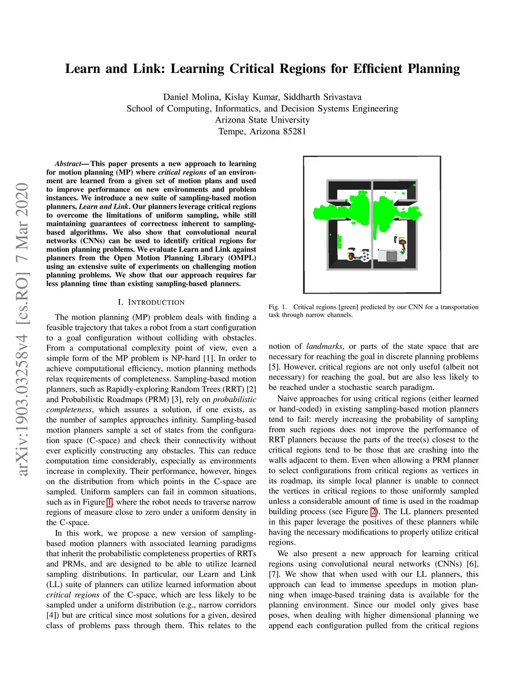 This paper presents a new approach to learning for motion planning (MP) where critical regions of an environment are learned from a given set of motion plans and used to improve performance on new environments and problem instances. We introduce a new suite of sampling-based motion planners, Learn and Link. Our planners leverage critical regions to overcome the limitations of uniform sampling, while still maintaining guarantees of correctness inherent to sampling-based algorithms. We also show that convolutional neural networks (CNNs) can be used to identify critical regions for motion planning problems. We evaluate Learn and Link against planners from the Open Motion Planning Library (OMPL) using an extensive suite of experiments on challenging motion planning problems. We show that our approach requires far less planning time than existing sampling-based planners.