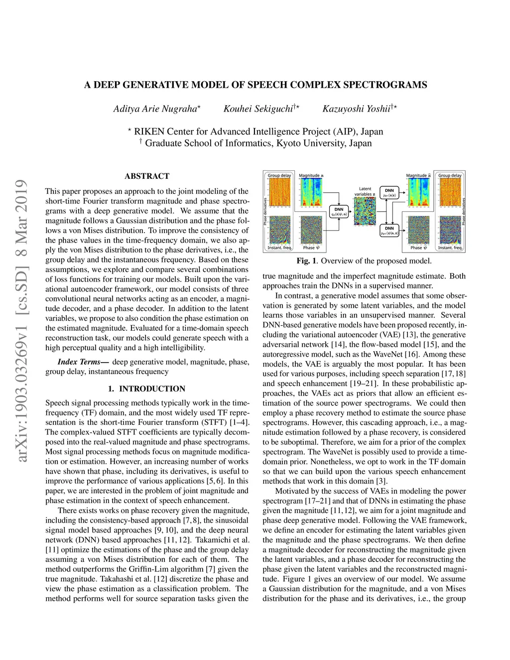 A Deep Generative Model of Speech Complex Spectrograms