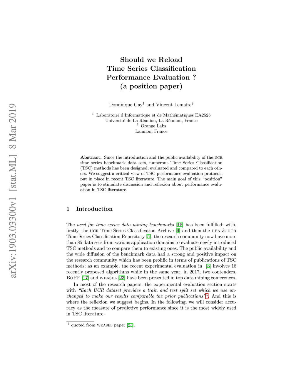 Should we Reload Time Series Classification Performance Evaluation ? (a