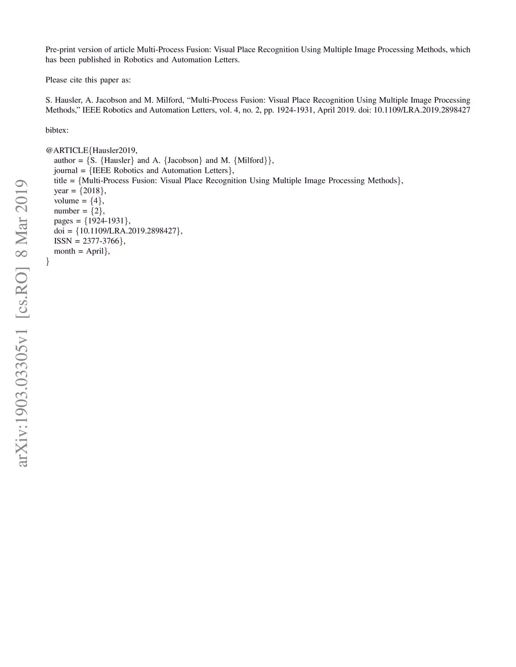 Multi-Process Fusion: Visual Place Recognition Using Multiple Image