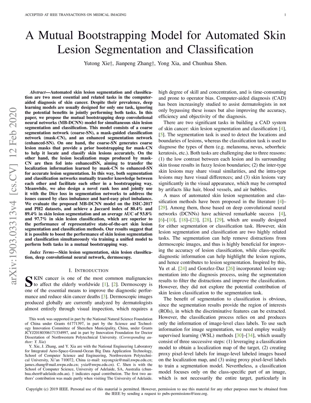 A Mutual Bootstrapping Model for Automated Skin Lesion Segmentation and