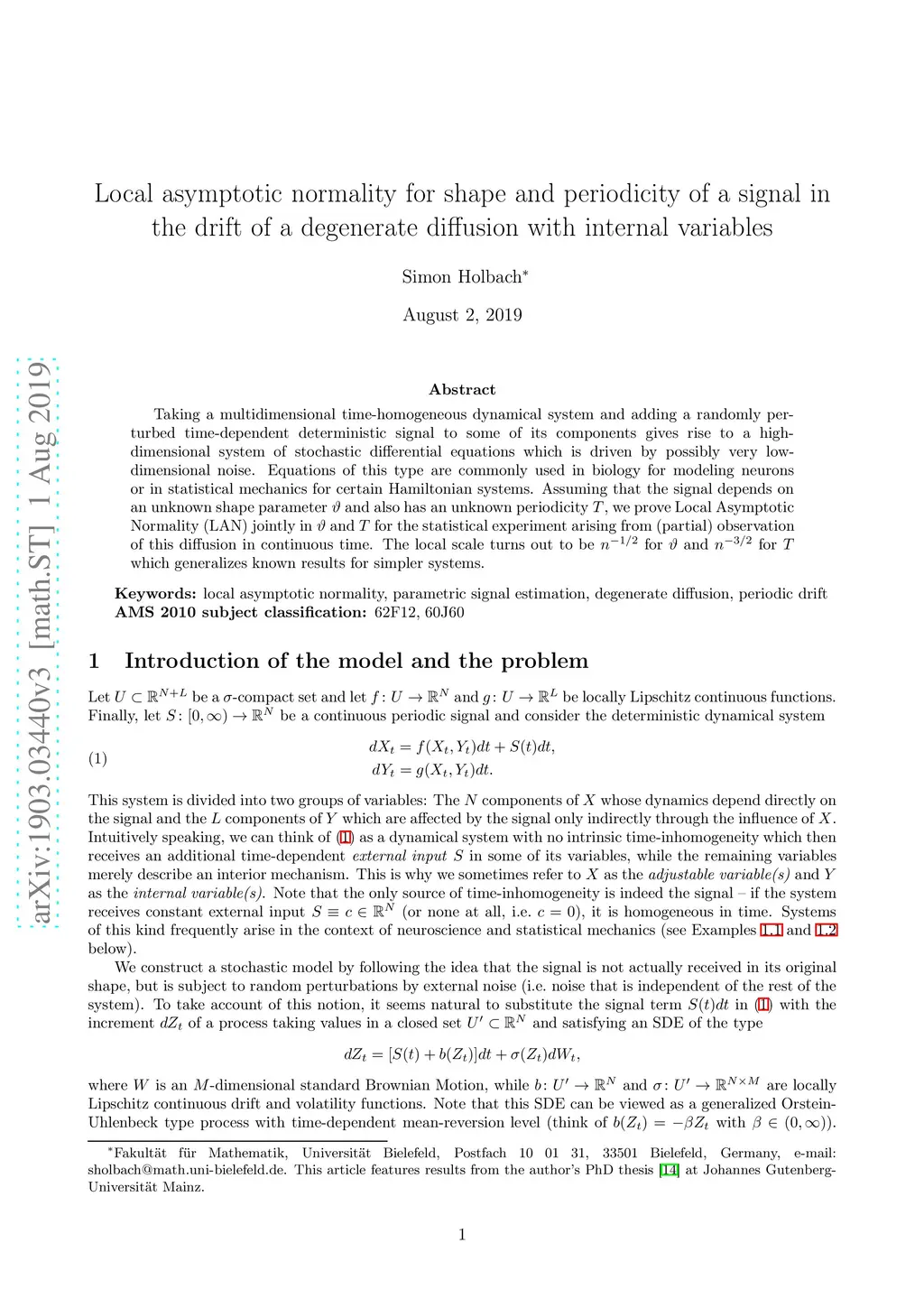Taking a multidimensional time-homogeneous dynamical system and adding a randomly perturbed time-dependent deterministic signal to some of its components gives rise to a high-dimensional system of stochastic differential equations which is driven by possibly very low-dimensional noise. Equations of this type are commonly used in biology for modeling neurons or in statistical mechanics for certain Hamiltonian systems. Assuming that the signal depends on an unknown shape parameter and also has an unknown periodicity , we prove Local Asymptotic Normality (LAN) jointly in and for the statistical experiment arising from (partial) observation of this diffusion in continuous time. The local scale turns out to be for and for which generalizes known results for simpler systems.