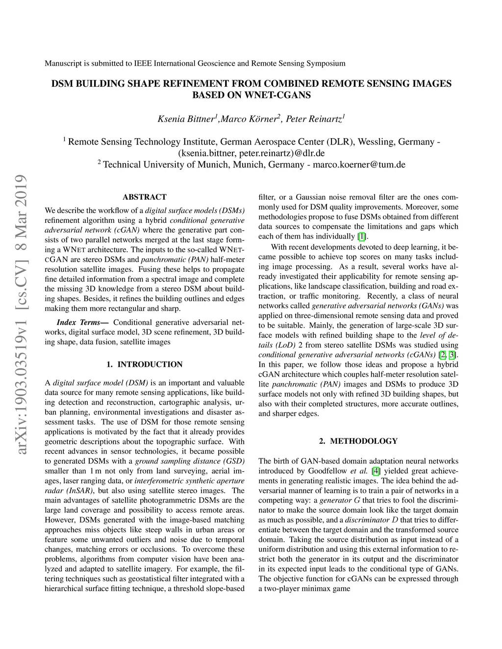 We describe the workflow of a digital surface models (DSMs) refinement algorithm using a hybrid conditional generative adversarial network (cGAN) where the generative part consists of two parallel networks merged at the last stage forming a WNet architecture. The inputs to the so-called WNet-cGAN are stereo DSMs and panchromatic (PAN) half-meter resolution satellite images. Fusing these helps to propagate fine detailed information from a spectral image and complete the missing 3D knowledge from a stereo DSM about building shapes. Besides, it refines the building outlines and edges making them more rectangular and sharp.