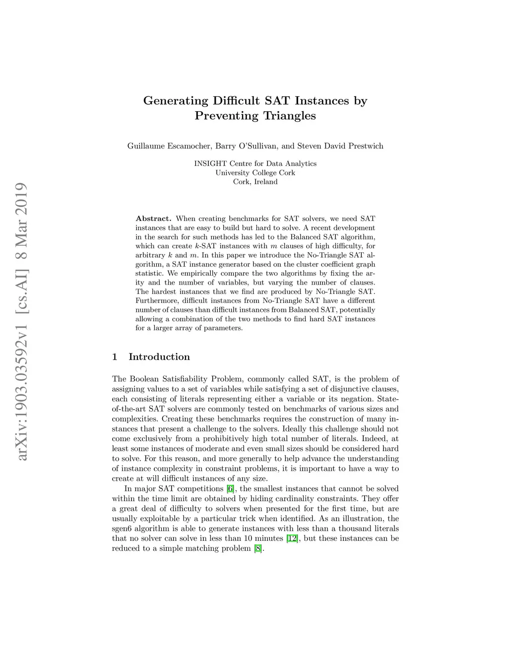 Generating Difficult SAT Instances by Preventing Triangles