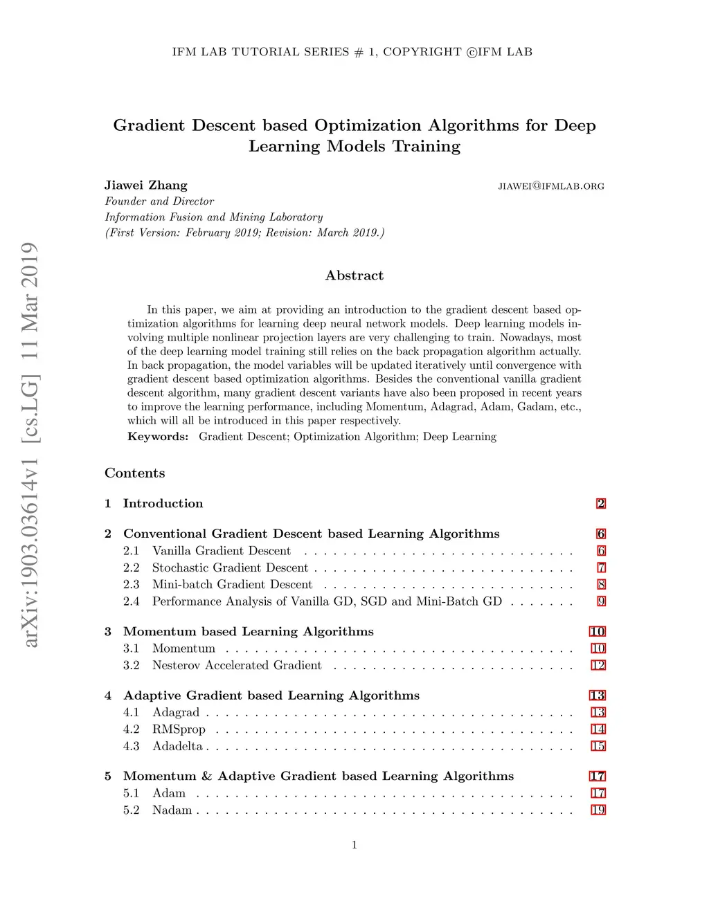 Gradient Descent based Optimization Algorithms for Deep Learning Models