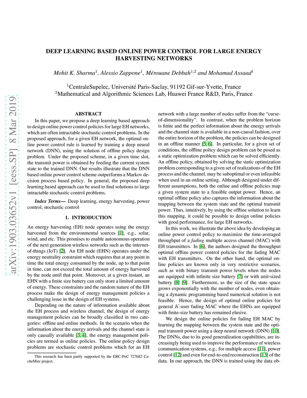 Deep Learning Based Online Power Control for Large Energy Harvesting