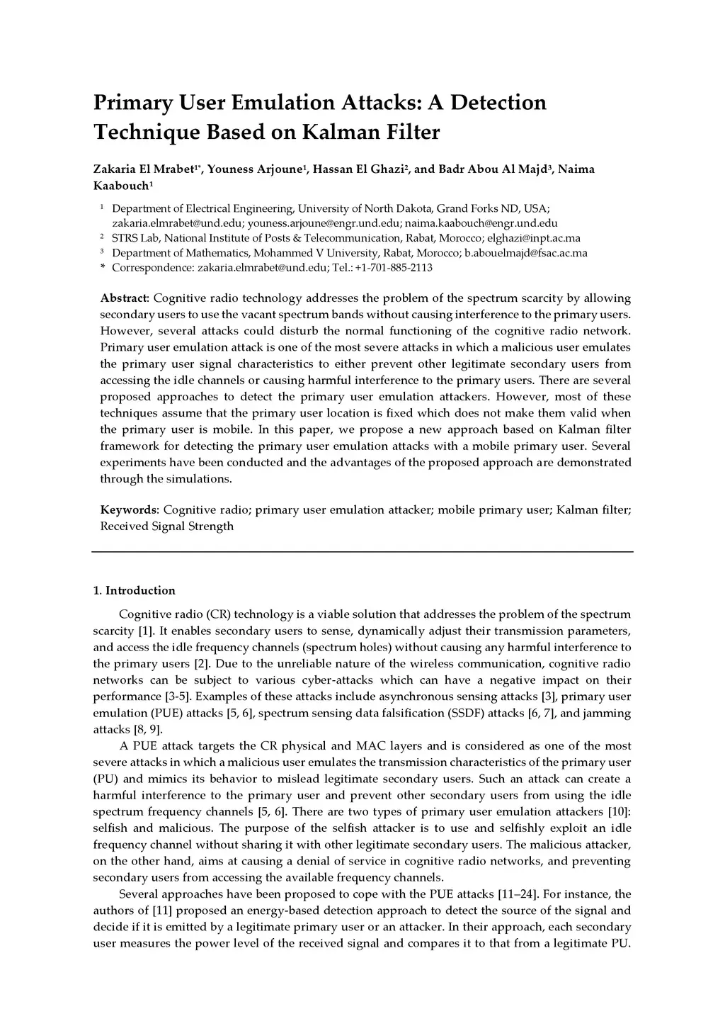 Primary User Emulation Attacks: A Detection Technique Based on Kalman