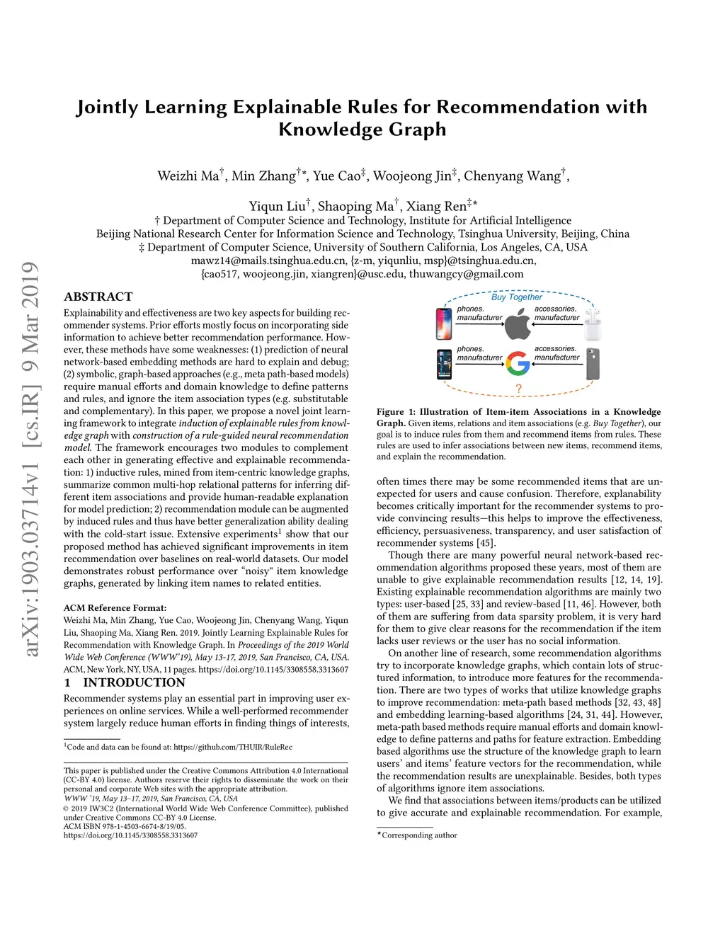 Jointly Learning Explainable Rules for Recommendation with Knowledge