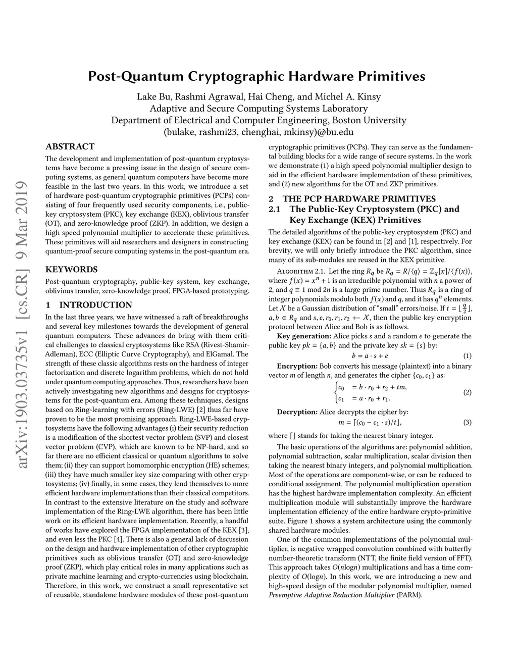 The development and implementation of post-quantum cryptosystems have become a pressing issue in the design of secure computing systems, as general quantum computers have become more feasible in the last two years. In this work, we introduce a set of hardware post-quantum cryptographic primitives (PCPs) consisting of four frequently used security components, i.e., public-key cryptosystem (PKC), key exchange (KEX), oblivious transfer (OT), and zero-knowledge proof (ZKP). In addition, we design a high speed polynomial multiplier to accelerate these primitives. These primitives will aid researchers and designers in constructing quantum-proof secure computing systems in the post-quantum era.