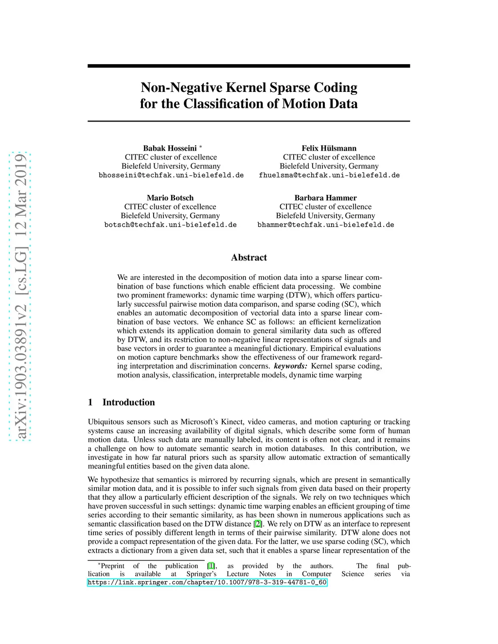 Non-Negative Kernel Sparse Coding for the Classification of Motion Data