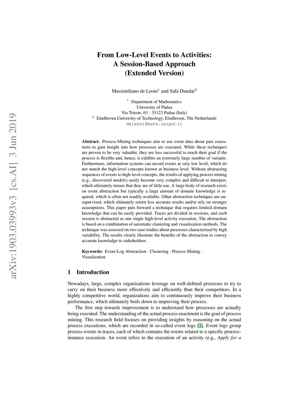 From Low-Level Events to Activities -- A Session-Based Approach