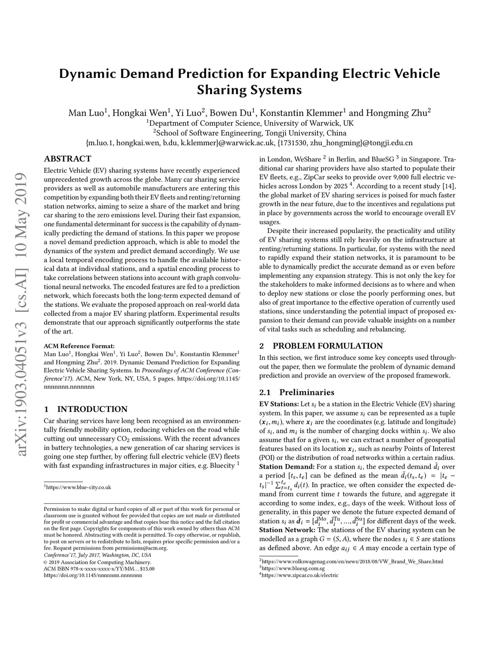 Demand Prediction for Electric Vehicle Sharing