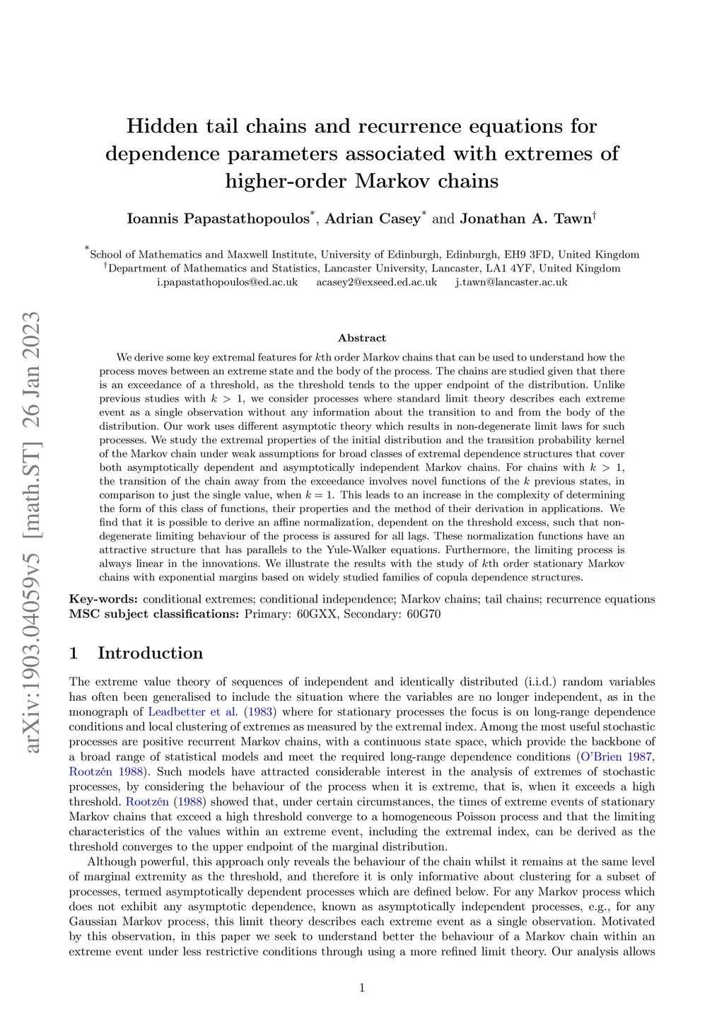 Hidden tail chains and recurrence equations for dependence parameters