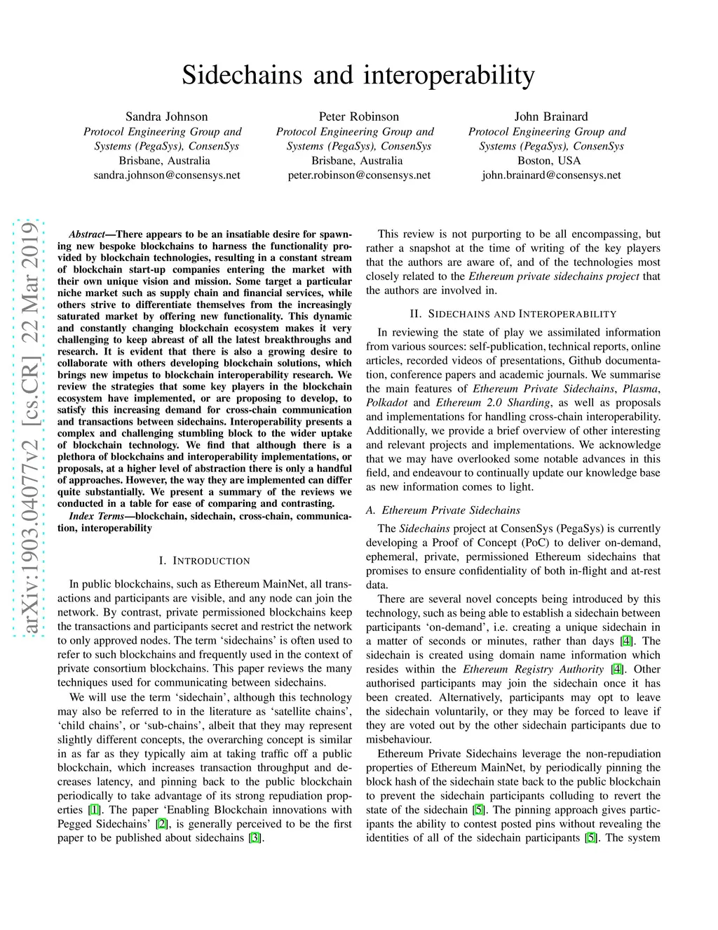 There appears to be an insatiable desire for spawning new bespoke blockchains to harness the functionality provided by blockchain technologies, resulting in a constant stream of blockchain start-up companies entering the market with their own unique vision and mission. Some target a particular niche market such as supply chain and financial services, while others strive to differentiate themselves from the increasingly saturated market by offering new functionality. This dynamic and constantly changing blockchain ecosystem makes it very challenging to keep abreast of all the latest breakthroughs and research. It is evident that there is also a growing desire to collaborate with others developing blockchain solutions, which brings new impetus to blockchain interoperability research. We review the strategies that some key players in the blockchain ecosystem have implemented, or are proposing to develop, to satisfy this increasing demand for cross-chain communication and transactions between sidechains. Interoperability presents a complex and challenging stumbling block to the wider uptake of blockchain technology. We find that although there is a plethora of blockchains and interoperability implementations, or proposals, at a higher level of abstraction there is only a handful of approaches. However, the way they are implemented can differ quite substantially. We present a summary of the reviews we conducted in a table for ease of comparing and contrasting.