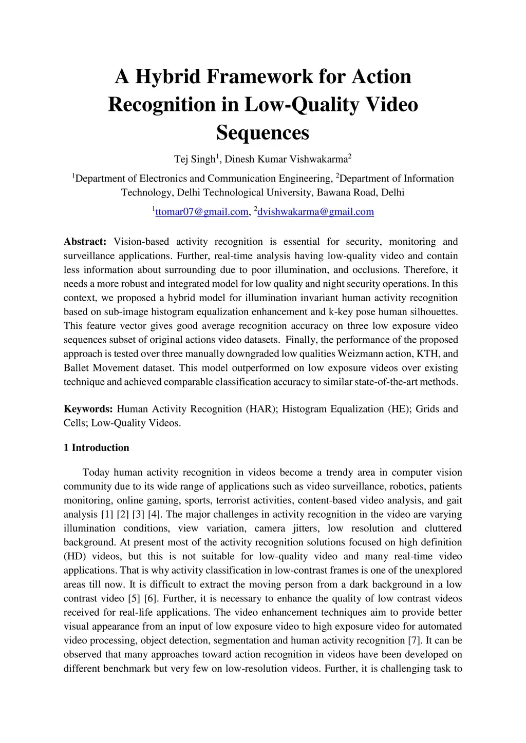 A Hybrid Framework for Action Recognition in Low-Quality Video Sequences