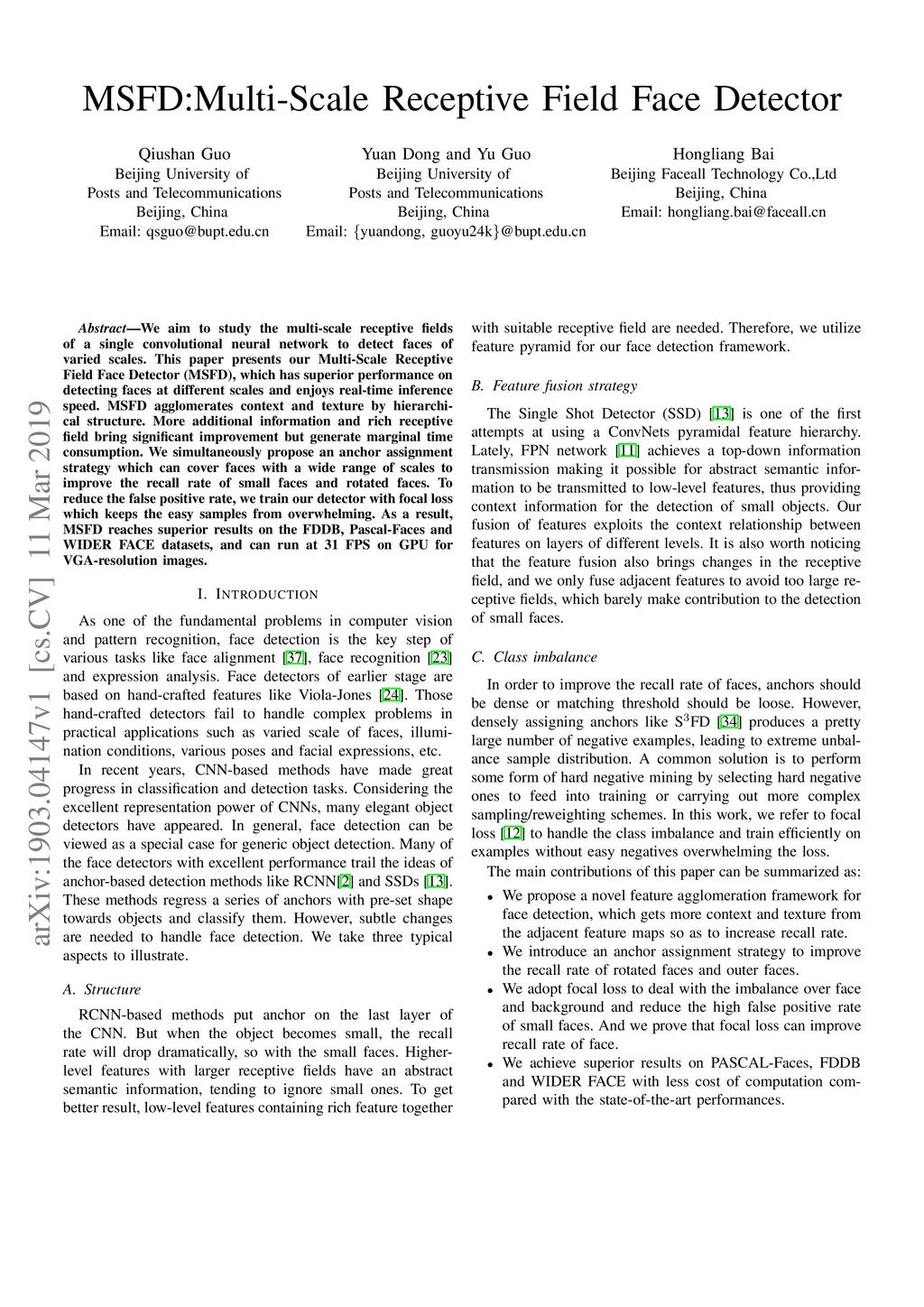We aim to study the multi-scale receptive fields of a single convolutional neural network to detect faces of varied scales. This paper presents our Multi-Scale Receptive Field Face Detector (MSFD), which has superior performance on detecting faces at different scales and enjoys real-time inference speed. MSFD agglomerates context and texture by hierarchical structure. More additional information and rich receptive field bring significant improvement but generate marginal time consumption. We simultaneously propose an anchor assignment strategy which can cover faces with a wide range of scales to improve the recall rate of small faces and rotated faces. To reduce the false positive rate, we train our detector with focal loss which keeps the easy samples from overwhelming. As a result, MSFD reaches superior results on the FDDB, Pascal-Faces and WIDER FACE datasets, and can run at 31 FPS on GPU for VGA-resolution images.