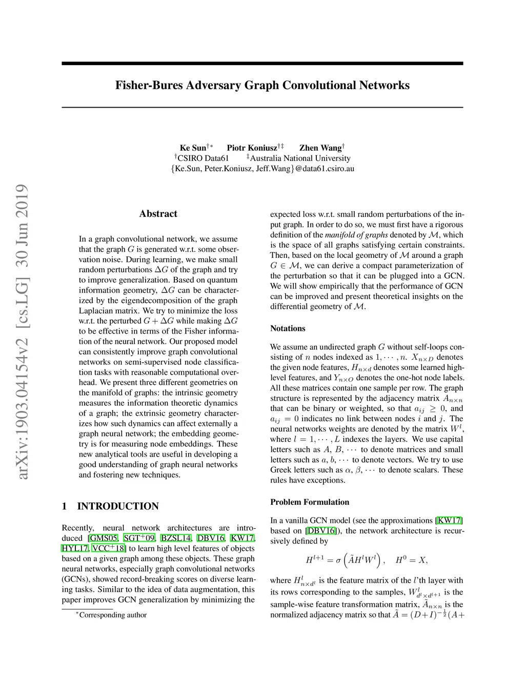 Fisher-Bures Adversary Graph Convolutional Networks