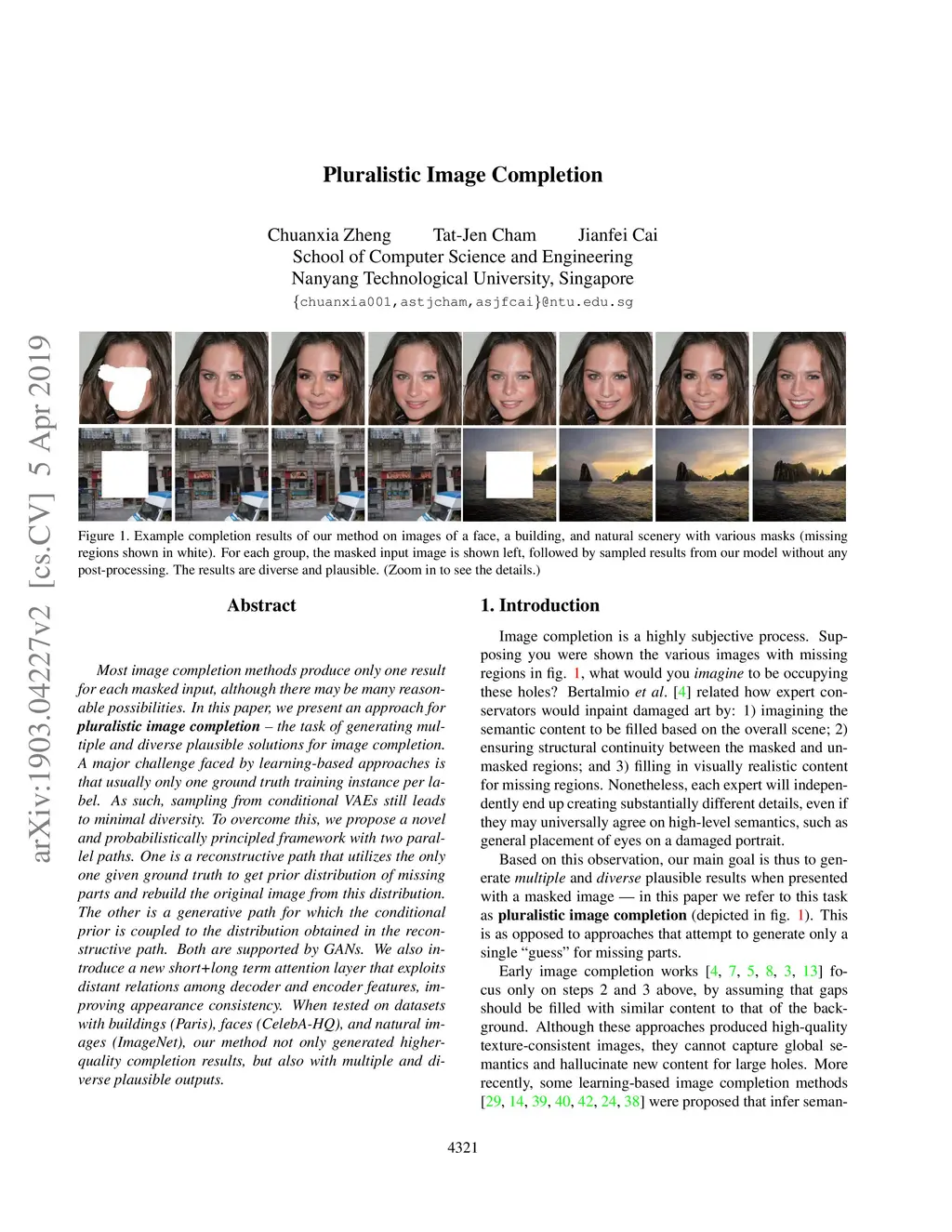 Pluralistic Image Completion
