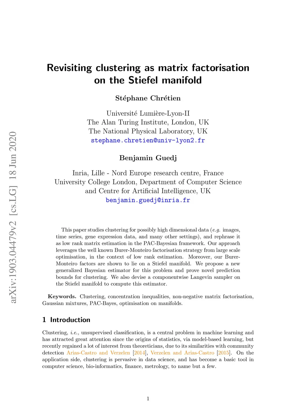 Revisiting clustering as matrix factorisation on the Stiefel manifold