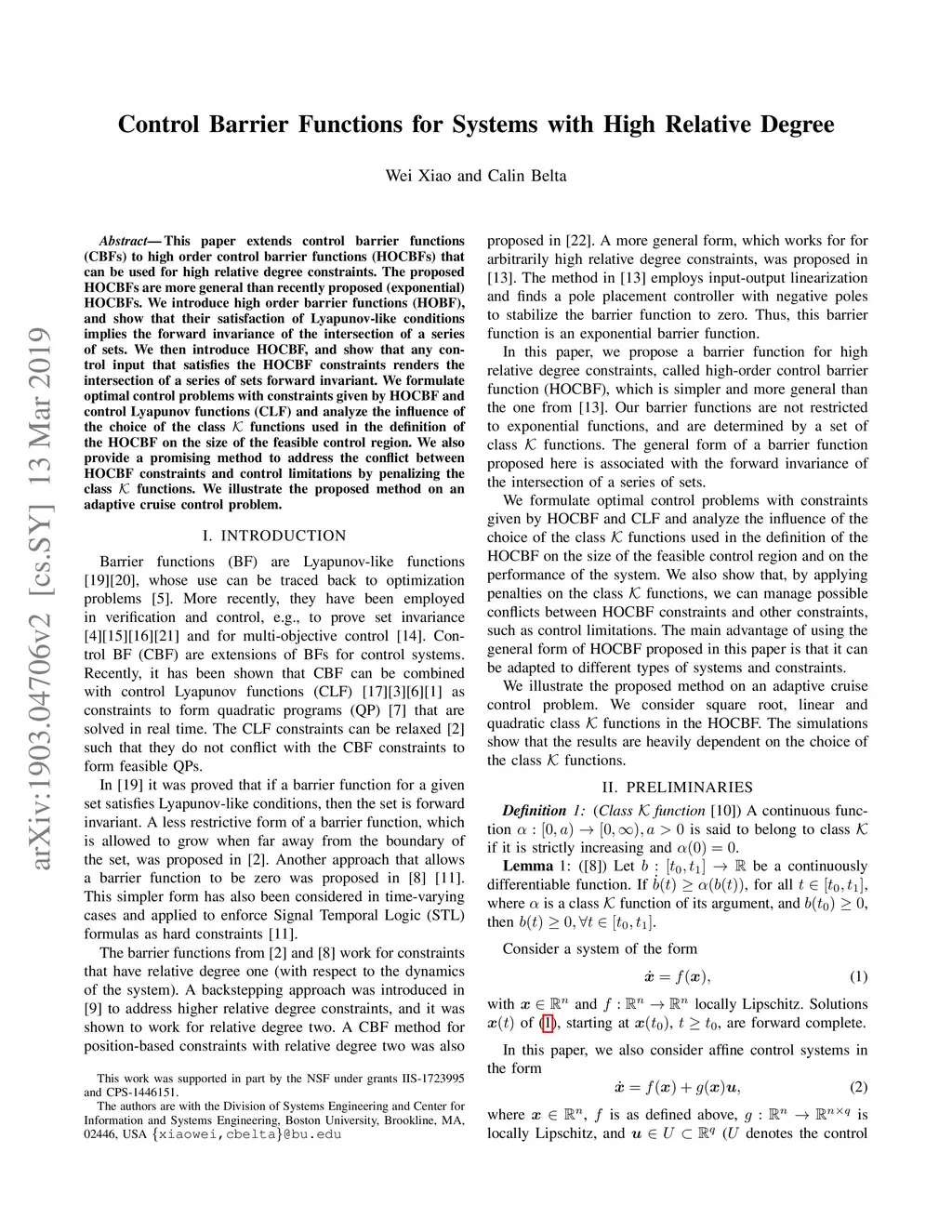 Control Barrier Functions for Systems with High Relative Degree