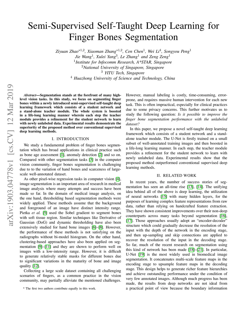 Semi-Supervised Self-Taught Deep Learning for Finger Bones Segmentation