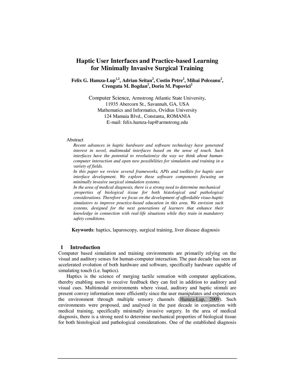 Recent advances in haptic hardware and software technology have generated interest in novel, multimodal interfaces based on the sense of touch. Such interfaces have the potential to revolutionize the way we think about human computer interaction and open new possibilities for simulation and training in a variety of fields. In this paper we review several frameworks, APIs and toolkits for haptic user interface development. We explore these software components focusing on minimally invasive surgical simulation systems. In the area of medical diagnosis, there is a strong need to determine mechanical properties of biological tissue for both histological and pathological considerations. Therefore we focus on the development of affordable visuo-haptic simulators to improve practice-based education in this area. We envision such systems, designed for the next generations of learners that enhance their knowledge in connection with real-life situations while they train in mandatory safety conditions.