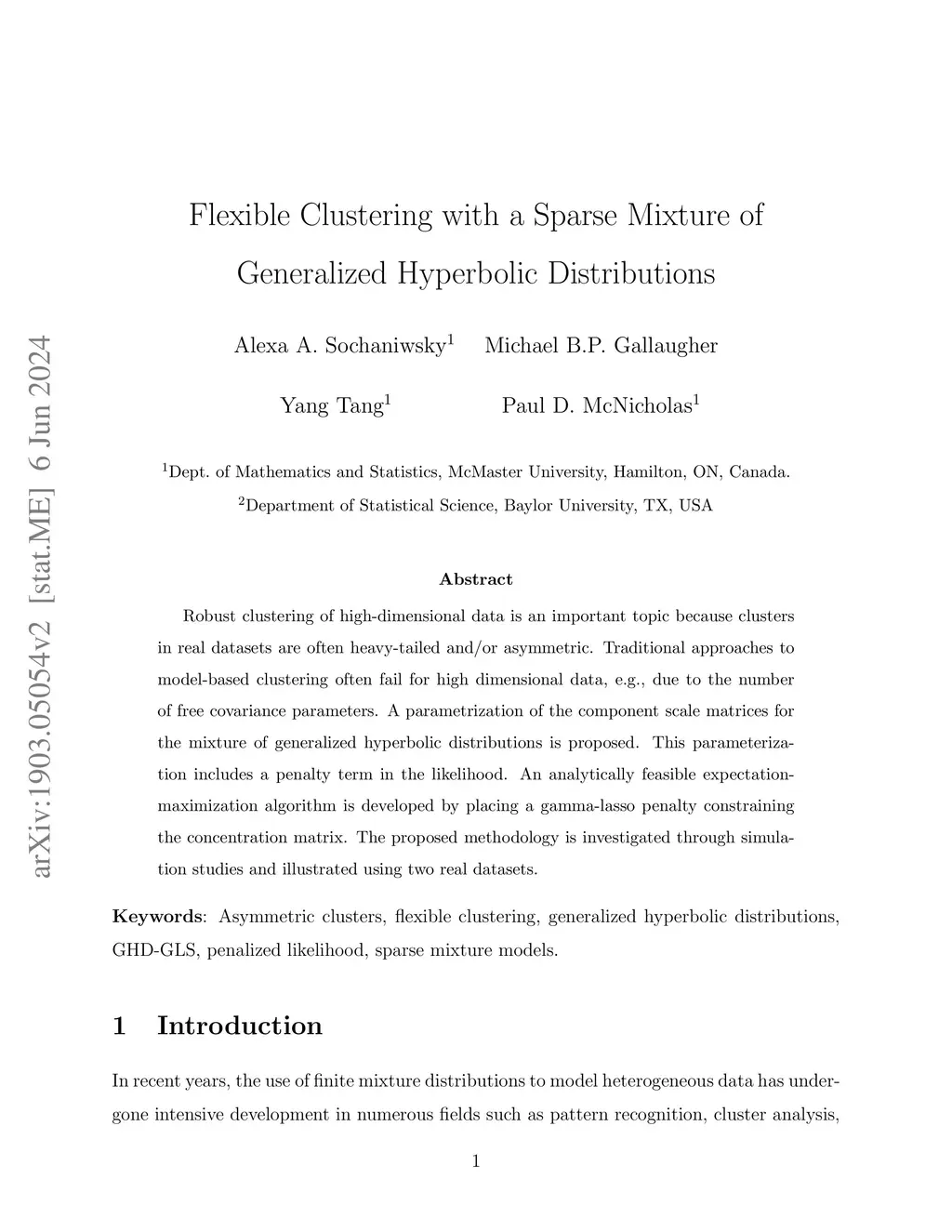 Flexible Clustering with a Sparse Mixture of Generalized Hyperbolic
