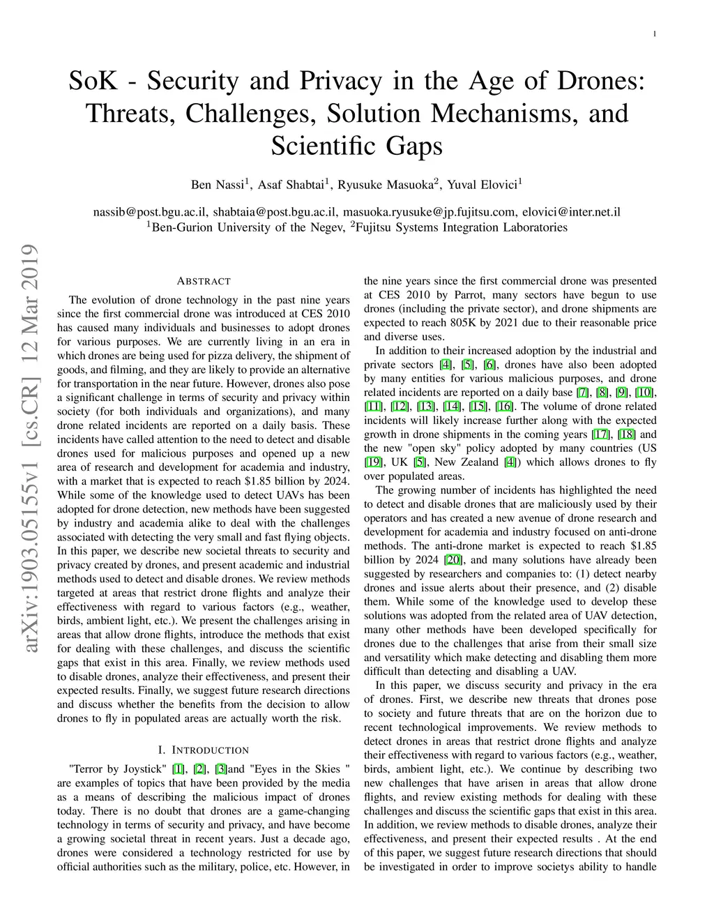 SoK - Security and Privacy in the Age of Drones: Threats, Challenges,
