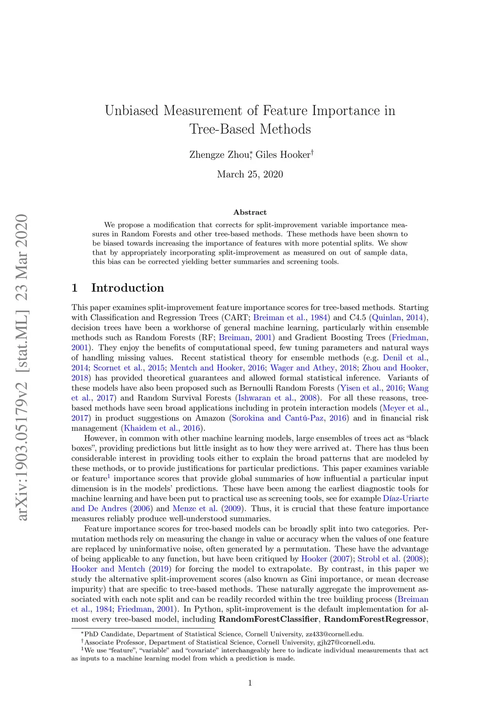 Unbiased Measurement of Feature Importance in Tree-Based Methods