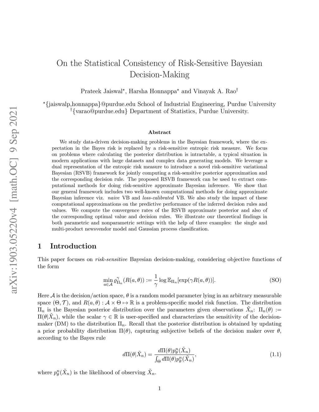 We study data-driven decision-making problems in the Bayesian framework, where the expectation in the Bayes risk is replaced by a risk-sensitive entropic risk measure. We focus on problems where calculating the posterior distribution is intractable, a typical situation in modern applications with large datasets and complex data generating models. We leverage a dual representation of the entropic risk measure to introduce a novel risk-sensitive variational Bayesian (RSVB) framework for jointly computing a risk-sensitive posterior approximation and the corresponding decision rule. The proposed RSVB framework can be used to extract computational methods for doing risk-sensitive approximate Bayesian inference. We show that our general framework includes two well-known computational methods for doing approximate Bayesian inference viz. naive VB and loss-calibrated VB. We also study the impact of these computational approximations on the predictive performance of the inferred decision rules and values. We compute the convergence rates of the RSVB approximate posterior and also of the corresponding optimal value and decision rules. We illustrate our theoretical findings in both parametric and nonparametric settings with the help of three examples: the single and multi-product newsvendor model and Gaussian process classification.