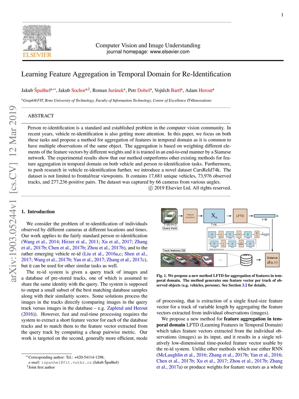 Person re-identification is a standard and established problem in the computer vision community. In recent years, vehicle re-identification is also getting more attention. In this paper, we focus on both these tasks and propose a method for aggregation of features in temporal domain as it is common to have multiple observations of the same object. The aggregation is based on weighting different elements of the feature vectors by different weights and it is trained in an end-to-end manner by a Siamese network. The experimental results show that our method outperforms other existing methods for feature aggregation in temporal domain on both vehicle and person re-identification tasks. Furthermore, to push research in vehicle re-identification further, we introduce a novel dataset CarsReId74k. The dataset is not limited to frontal/rear viewpoints. It contains 17,681 unique vehicles, 73,976 observed tracks, and 277,236 positive pairs. The dataset was captured by 66 cameras from various angles.