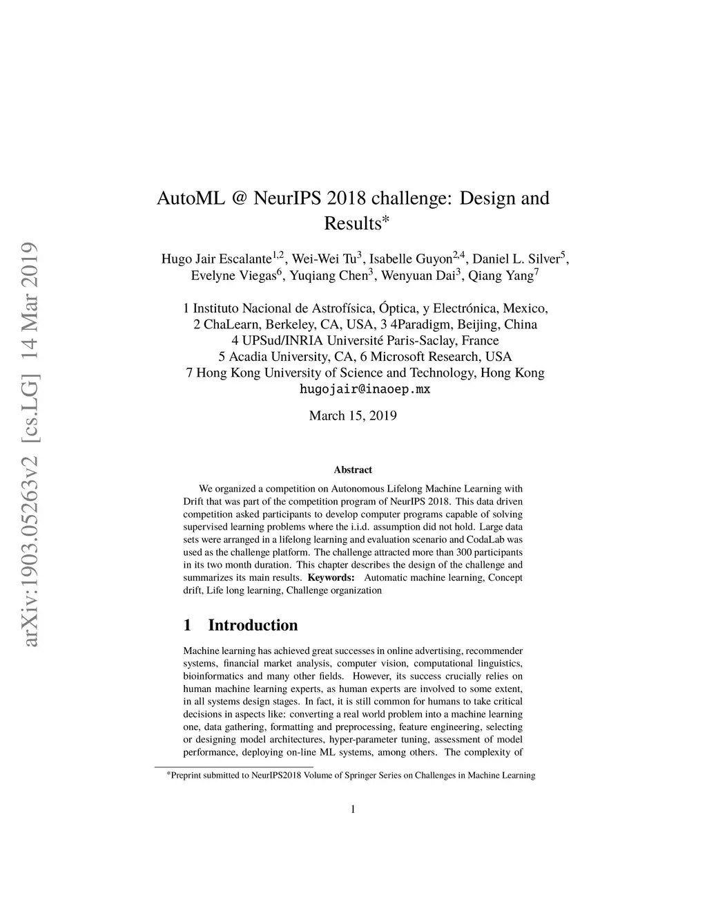 AutoML @ NeurIPS 2018 challenge: Design and Results