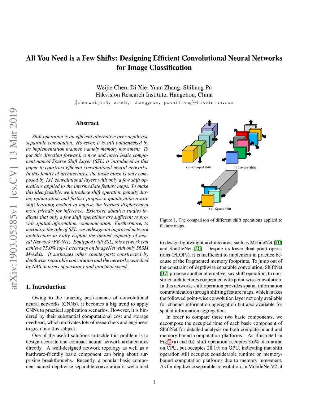 Shift operation is an efficient alternative over depthwise separable convolution. However, it is still bottlenecked by its implementation manner, namely memory movement. To put this direction forward, a new and novel basic component named Sparse Shift Layer (SSL) is introduced in this paper to construct efficient convolutional neural networks. In this family of architectures, the basic block is only composed by 1x1 convolutional layers with only a few shift operations applied to the intermediate feature maps. To make this idea feasible, we introduce shift operation penalty during optimization and further propose a quantization-aware shift learning method to impose the learned displacement more friendly for inference. Extensive ablation studies indicate that only a few shift operations are sufficient to provide spatial information communication. Furthermore, to maximize the role of SSL, we redesign an improved network architecture to Fully Exploit the limited capacity of neural Network (FE-Net). Equipped with SSL, this network can achieve 75.0% top-1 accuracy on ImageNet with only 563M M-Adds. It surpasses other counterparts constructed by depthwise separable convolution and the networks searched by NAS in terms of accuracy and practical speed.