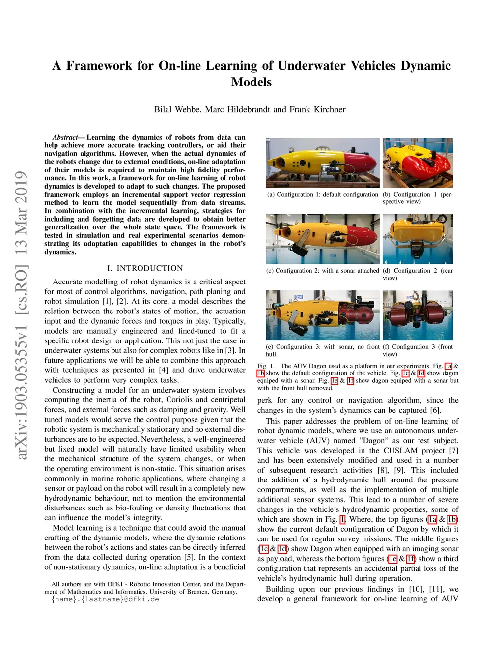 A Framework for On-line Learning of Underwater Vehicles Dynamic Models
