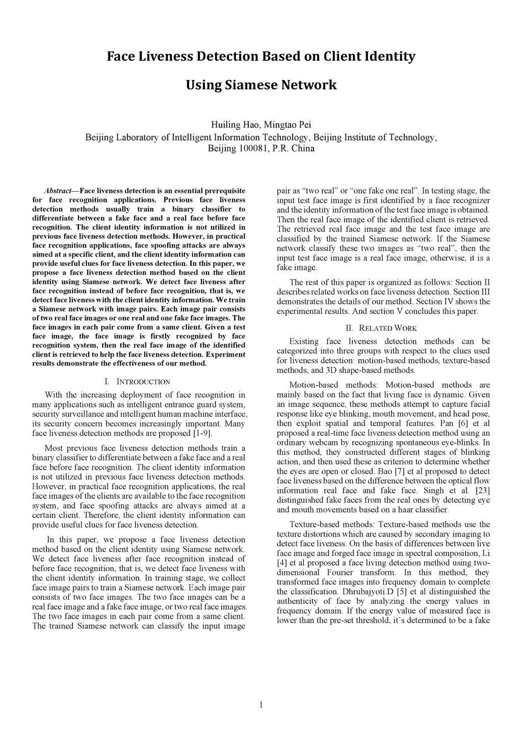 Face Liveness Detection Based on Client Identity Using Siamese Network