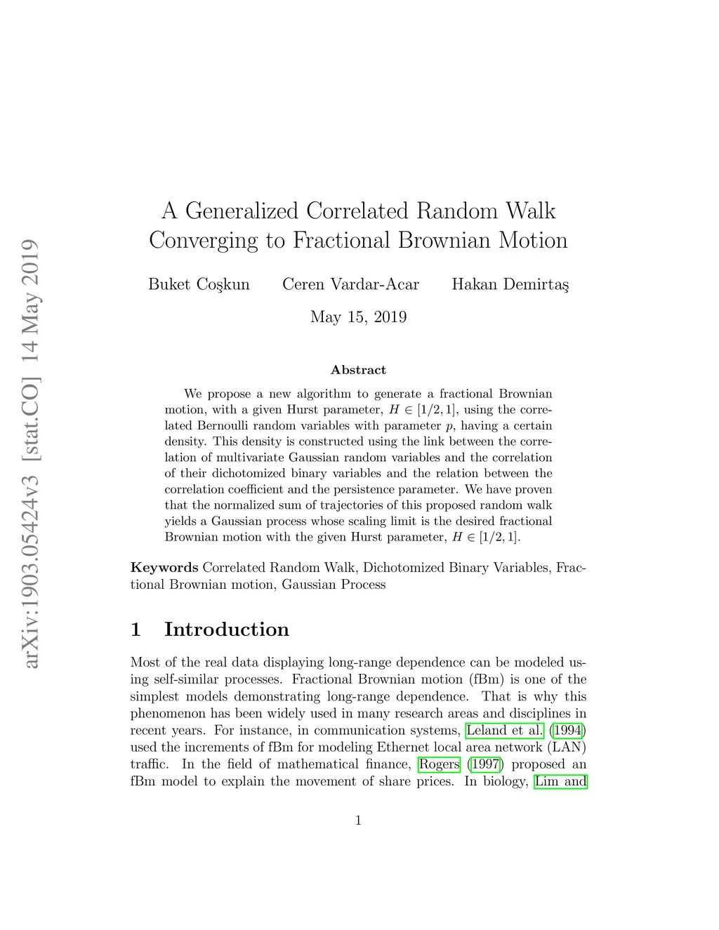 We propose a new algorithm to generate a fractional Brownian motion, with a given Hurst parameter, 1/2<H<1 using the correlated Bernoulli random variables with parameter p; having a certain density. This density is constructed using the link between the correlation of multivariate Gaussian random variables and the correlation of their dichotomized binary variables and the relation between the correlation coefficient and the persistence parameter. We prove that the normalized sum of trajectories of this proposed random walk yields a Gaussian process whose scaling limit is the desired fractional Brownian motion with the given Hurst parameter, 1/2<H<1