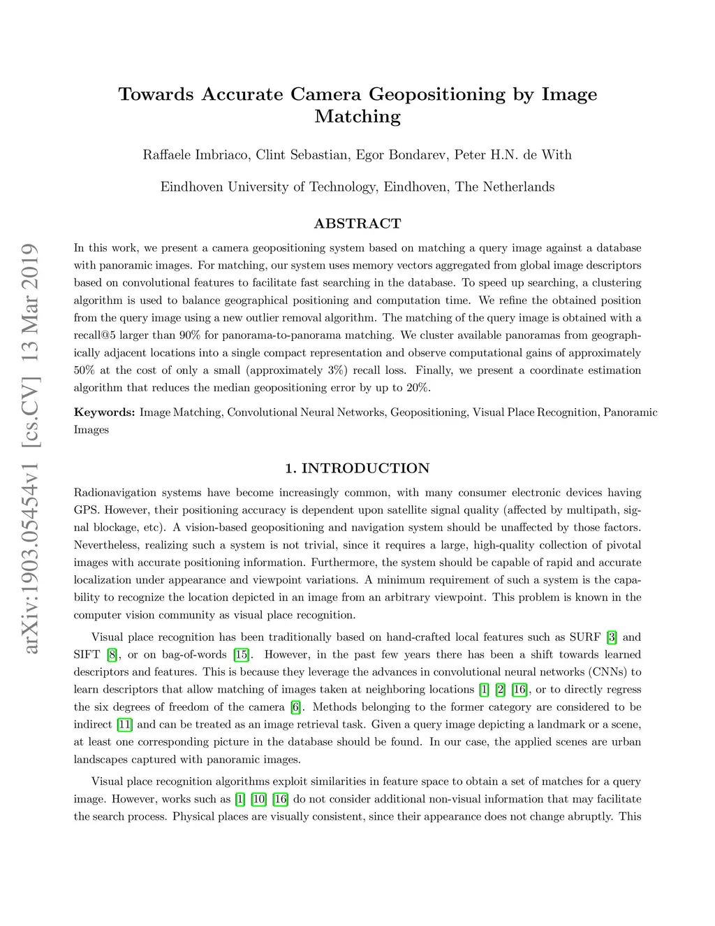 Towards Accurate Camera Geopositioning by Image Matching