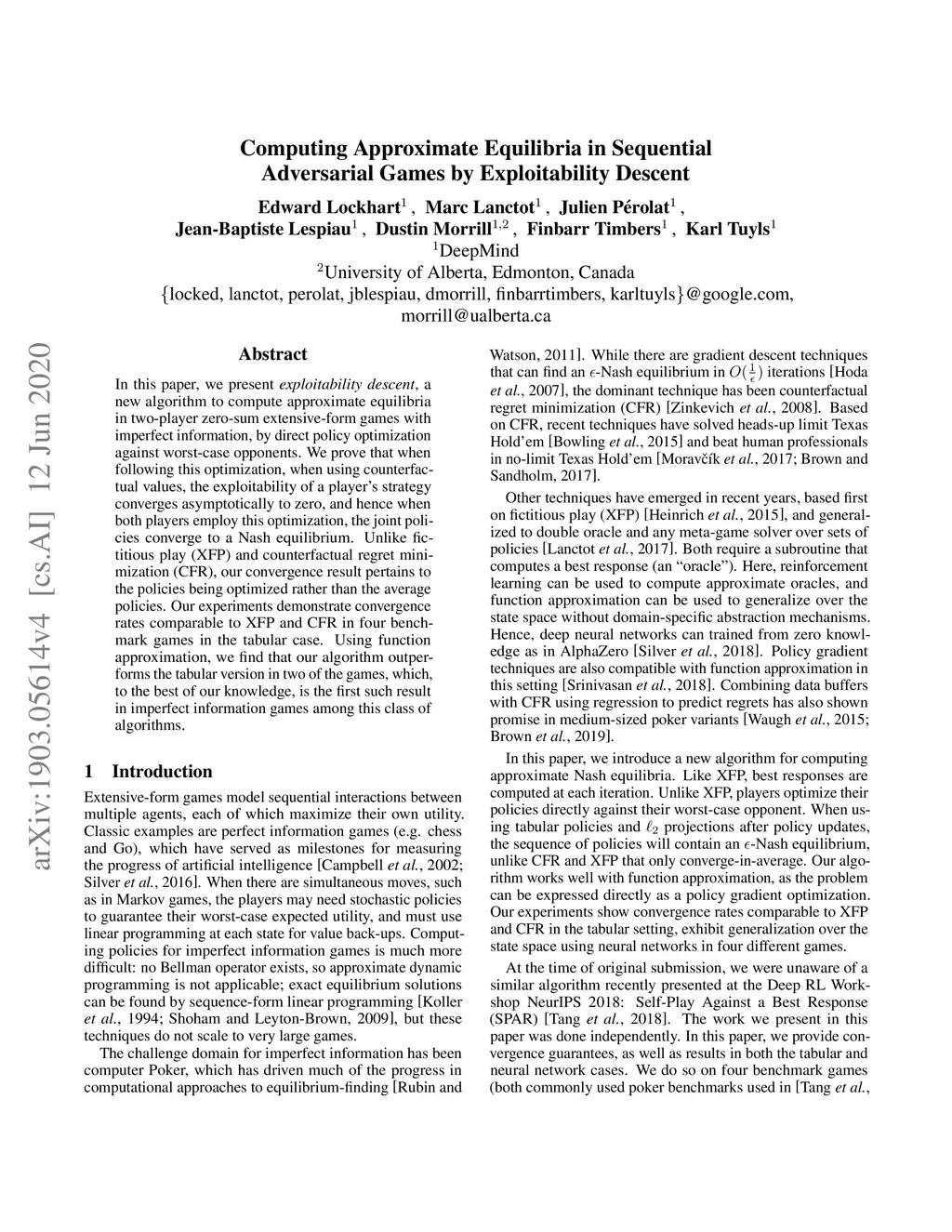 In this paper, we present exploitability descent, a new algorithm to compute approximate equilibria in two-player zero-sum extensive-form games with imperfect information, by direct policy optimization against worst-case opponents. We prove that when following this optimization, the exploitability of a player's strategy converges asymptotically to zero, and hence when both players employ this optimization, the joint policies converge to a Nash equilibrium. Unlike fictitious play (XFP) and counterfactual regret minimization (CFR), our convergence result pertains to the policies being optimized rather than the average policies. Our experiments demonstrate convergence rates comparable to XFP and CFR in four benchmark games in the tabular case. Using function approximation, we find that our algorithm outperforms the tabular version in two of the games, which, to the best of our knowledge, is the first such result in imperfect information games among this class of algorithms.