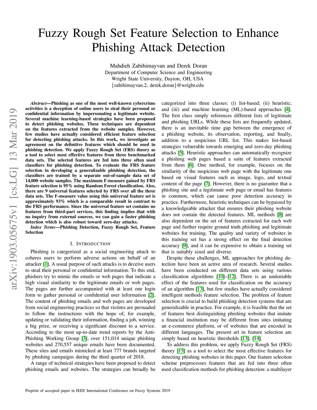 Fuzzy Rough Set Feature Selection to Enhance Phishing Attack Detection