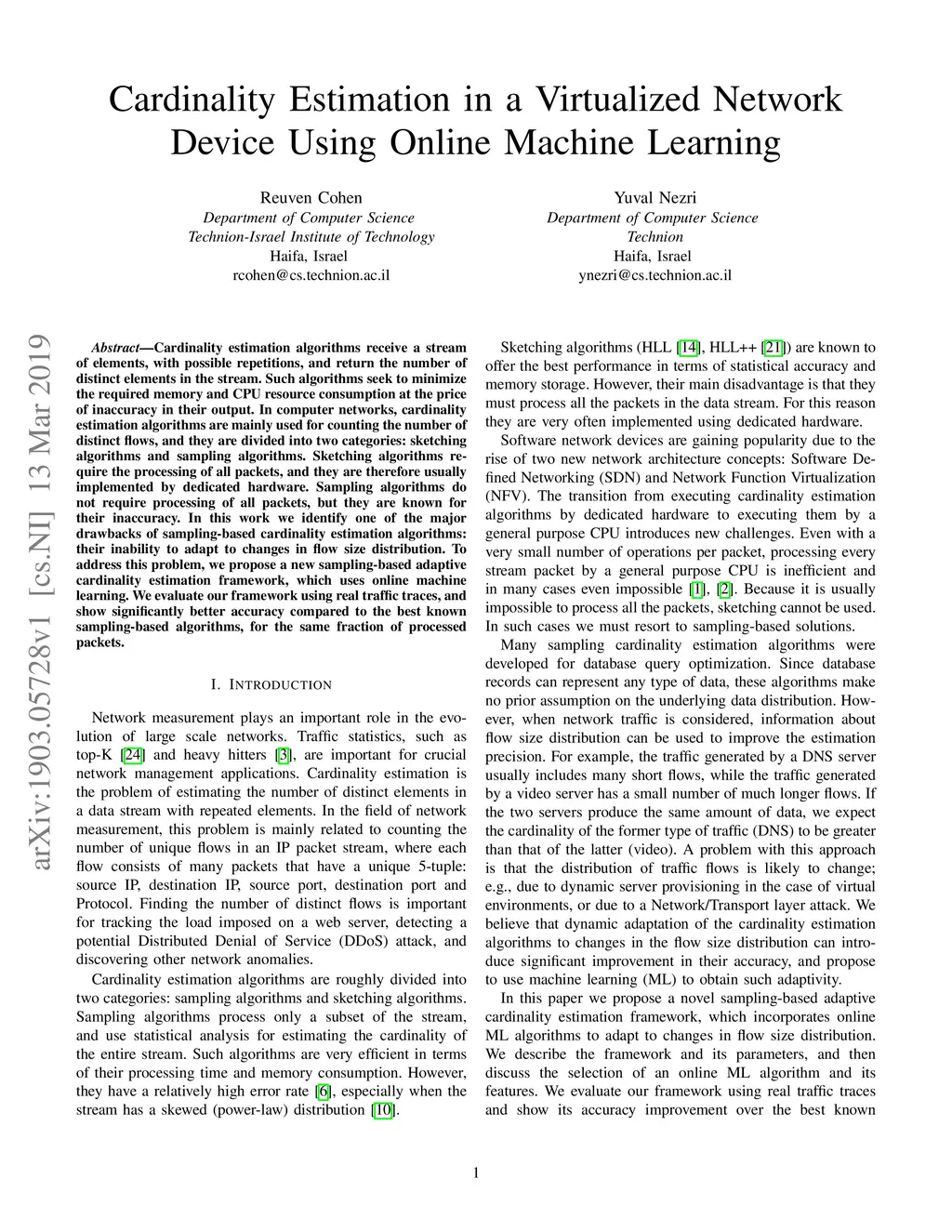 Cardinality Estimation in a Virtualized Network Device Using Online