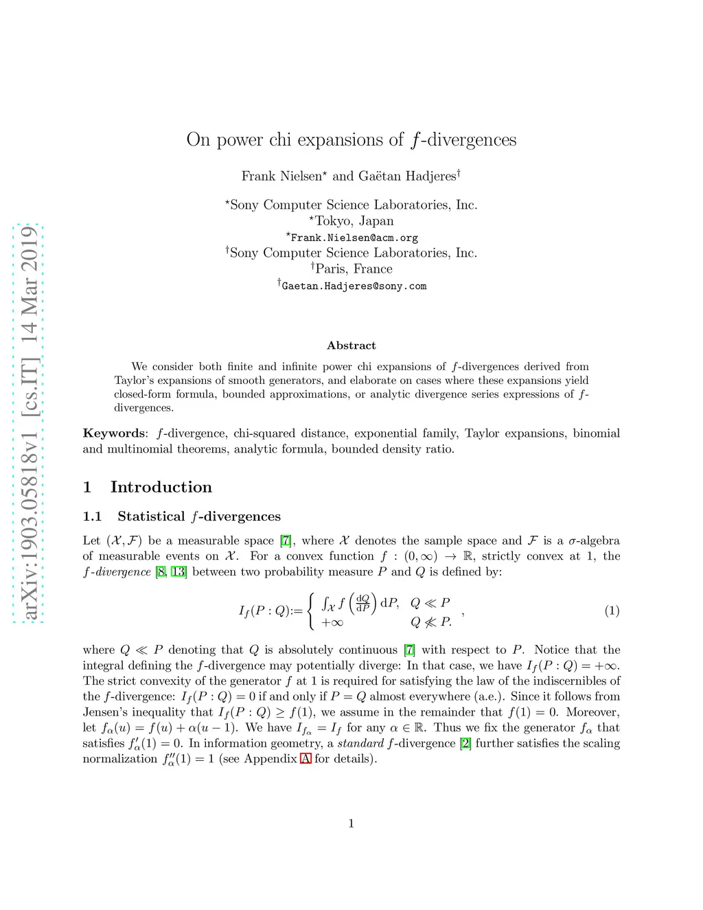 We consider both finite and infinite power chi expansions of -divergences derived from Taylor's expansions of smooth generators, and elaborate on cases where these expansions yield closed-form formula, bounded approximations, or analytic divergence series expressions of -divergences.