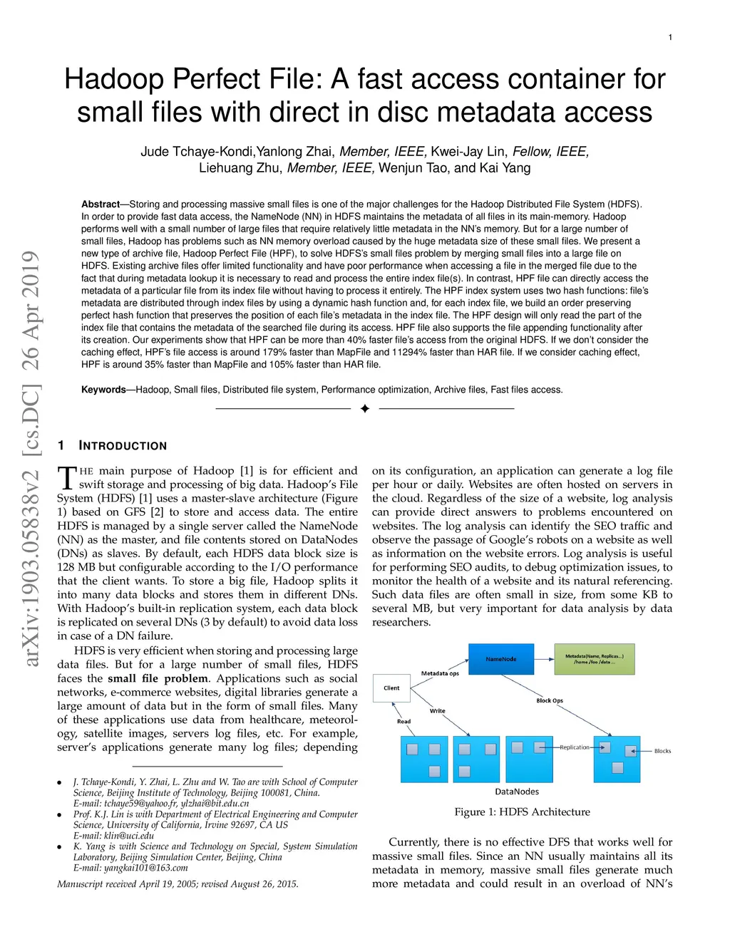 Hadoop Perfect File: A fast access container for small files with direct