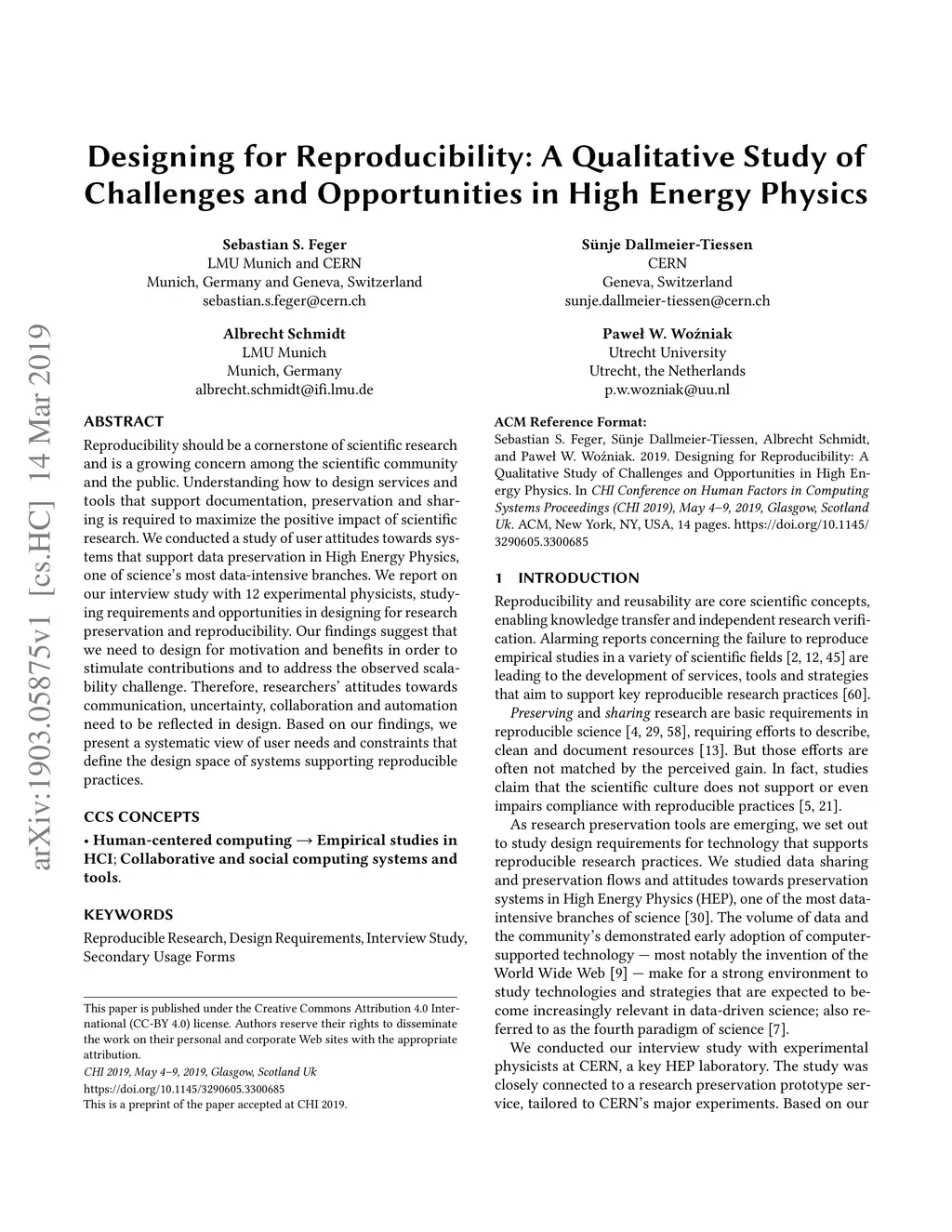 Reproducibility should be a cornerstone of scientific research and is a growing concern among the scientific community and the public. Understanding how to design services and tools that support documentation, preservation and sharing is required to maximize the positive impact of scientific research. We conducted a study of user attitudes towards systems that support data preservation in High Energy Physics, one of science's most data-intensive branches. We report on our interview study with 12 experimental physicists, studying requirements and opportunities in designing for research preservation and reproducibility. Our findings suggest that we need to design for motivation and benefits in order to stimulate contributions and to address the observed scalability challenge. Therefore, researchers' attitudes towards communication, uncertainty, collaboration and automation need to be reflected in design. Based on our findings, we present a systematic view of user needs and constraints that define the design space of systems supporting reproducible practices.